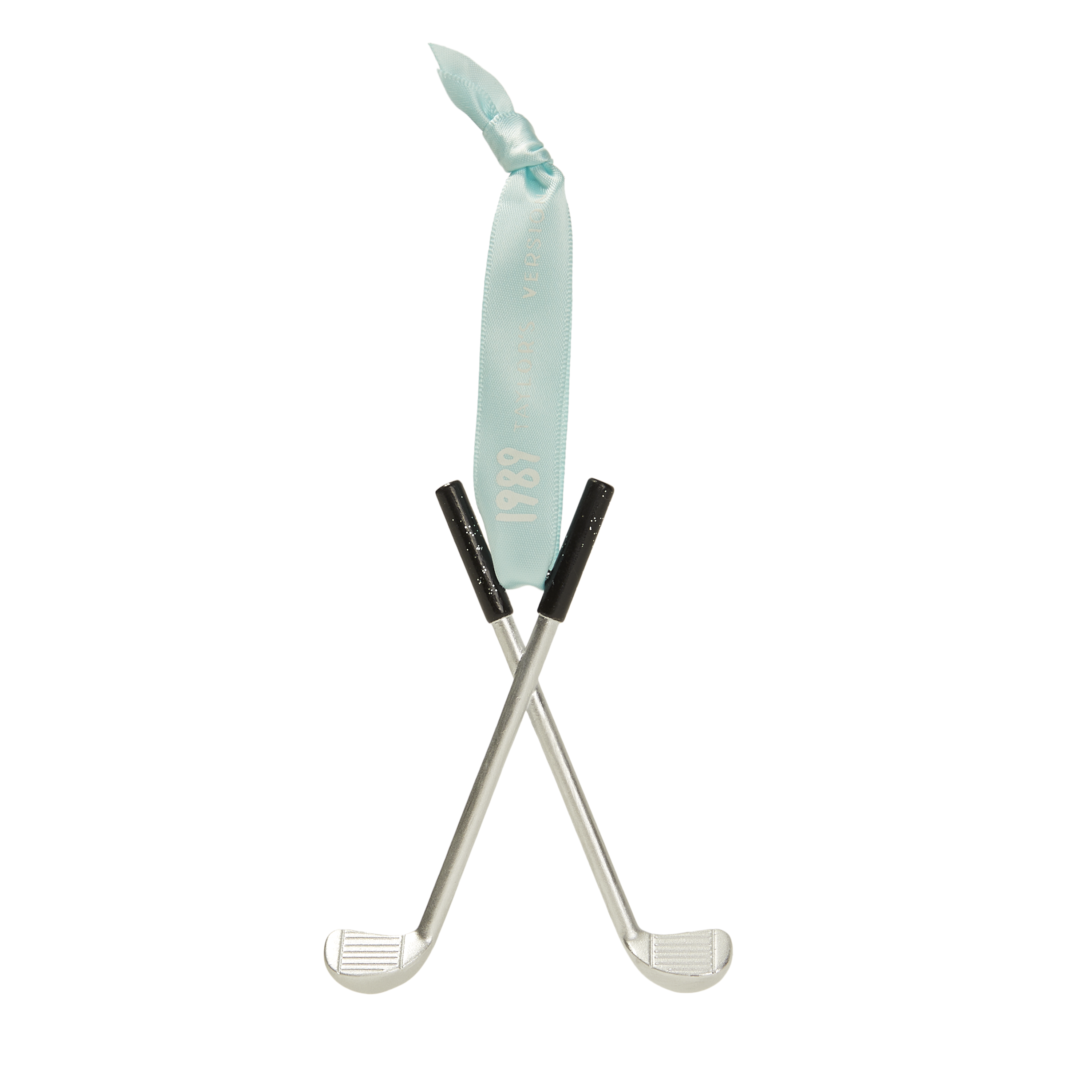 Golf club ornament with "1989 Taylor's Version" printed on blue ribbon.