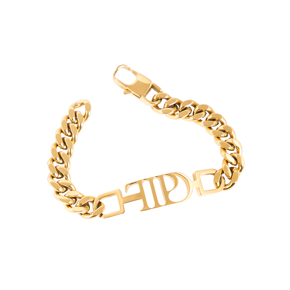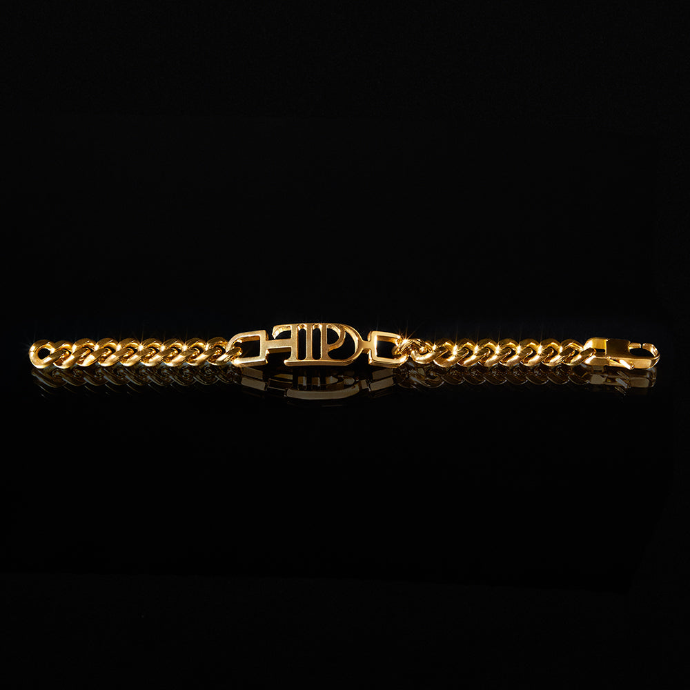 Gold-plated chain link bracelet featuring "TTPD" album logo and hook closure. Comes with cotton/poly cinch bag featuring “TTPD” album logo printed on front.