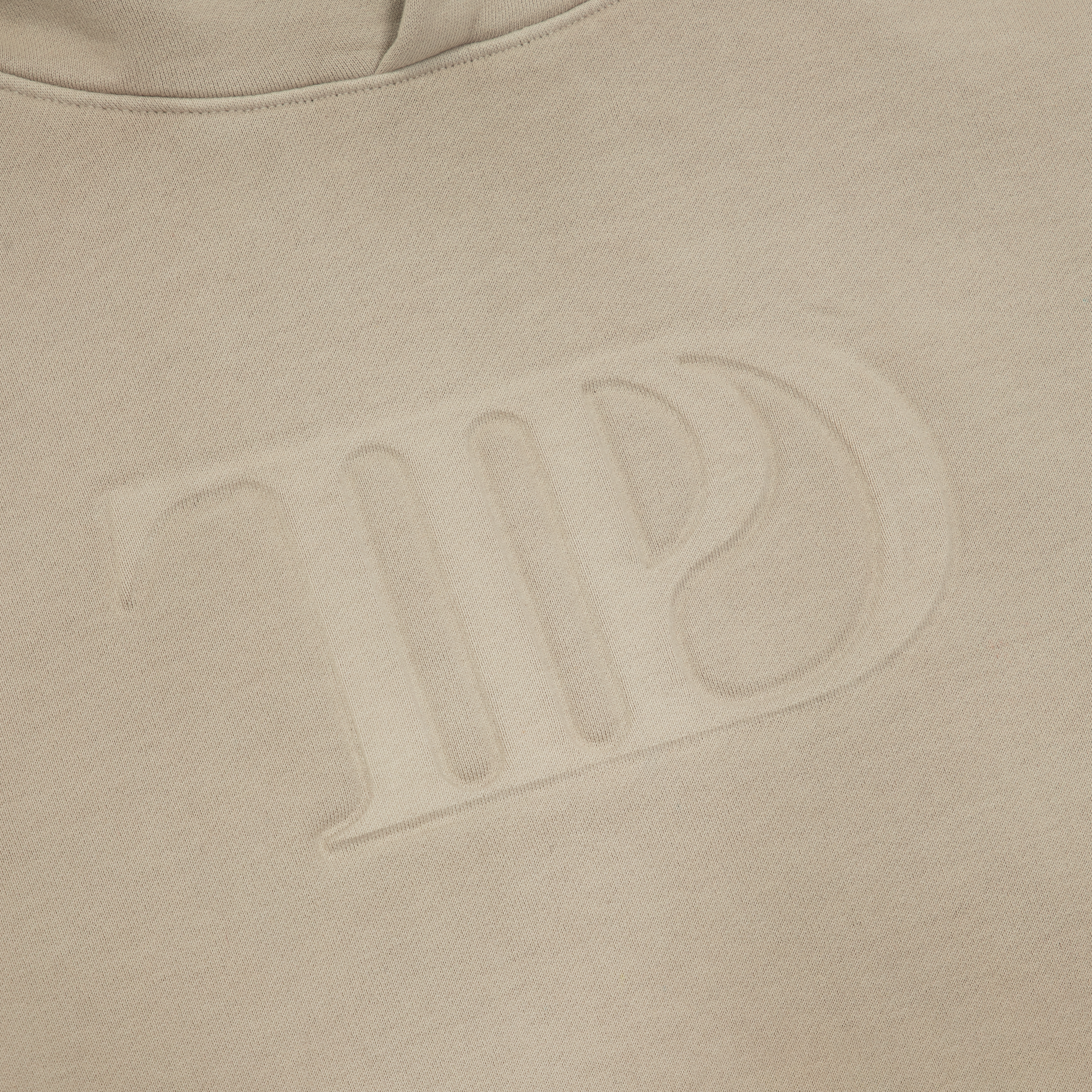 Parchment beige hoodie with front pocket featuring embossed "TTPD" album logo on front.