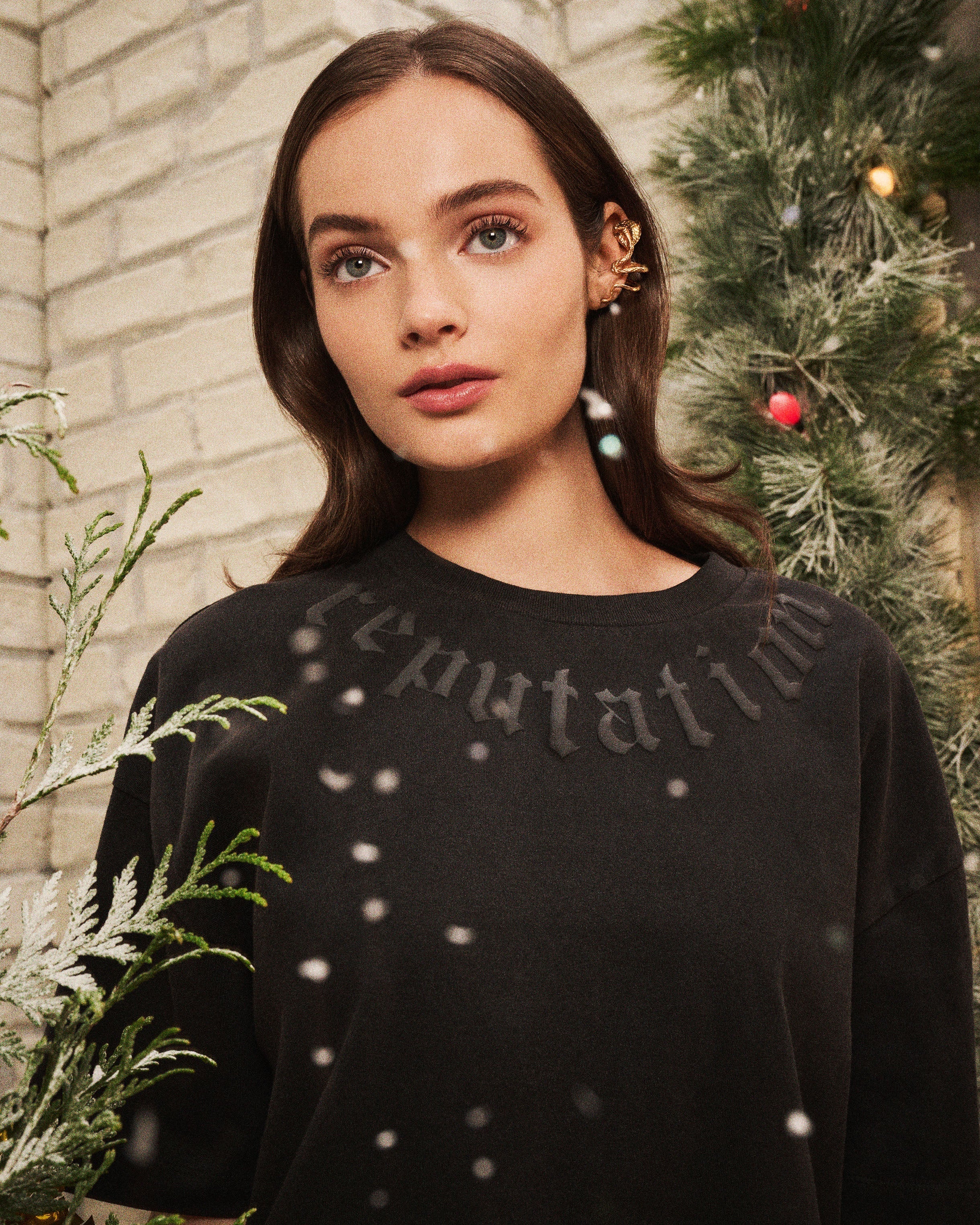 Washed black t-shirt featuring "reputation" album logo puff print on front.