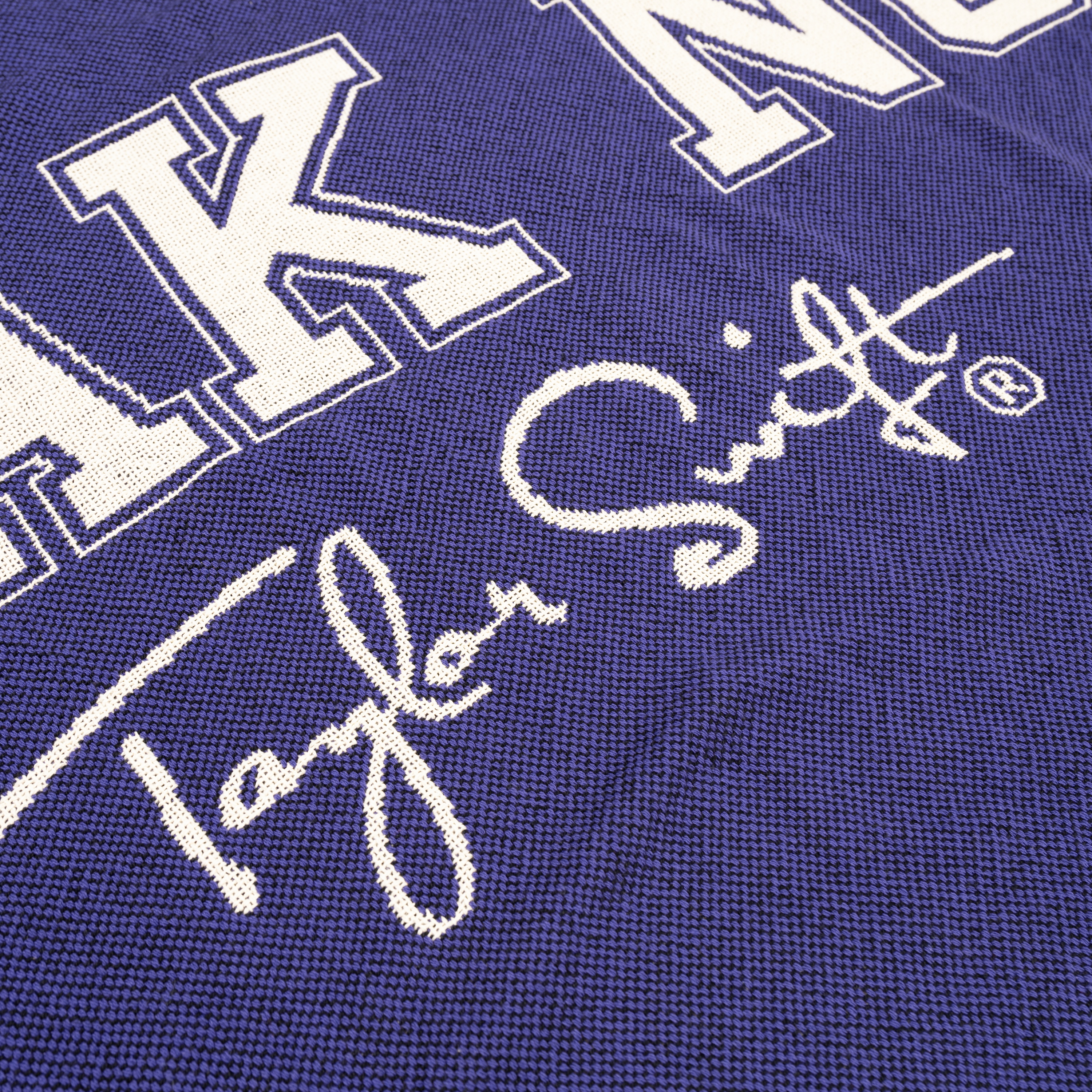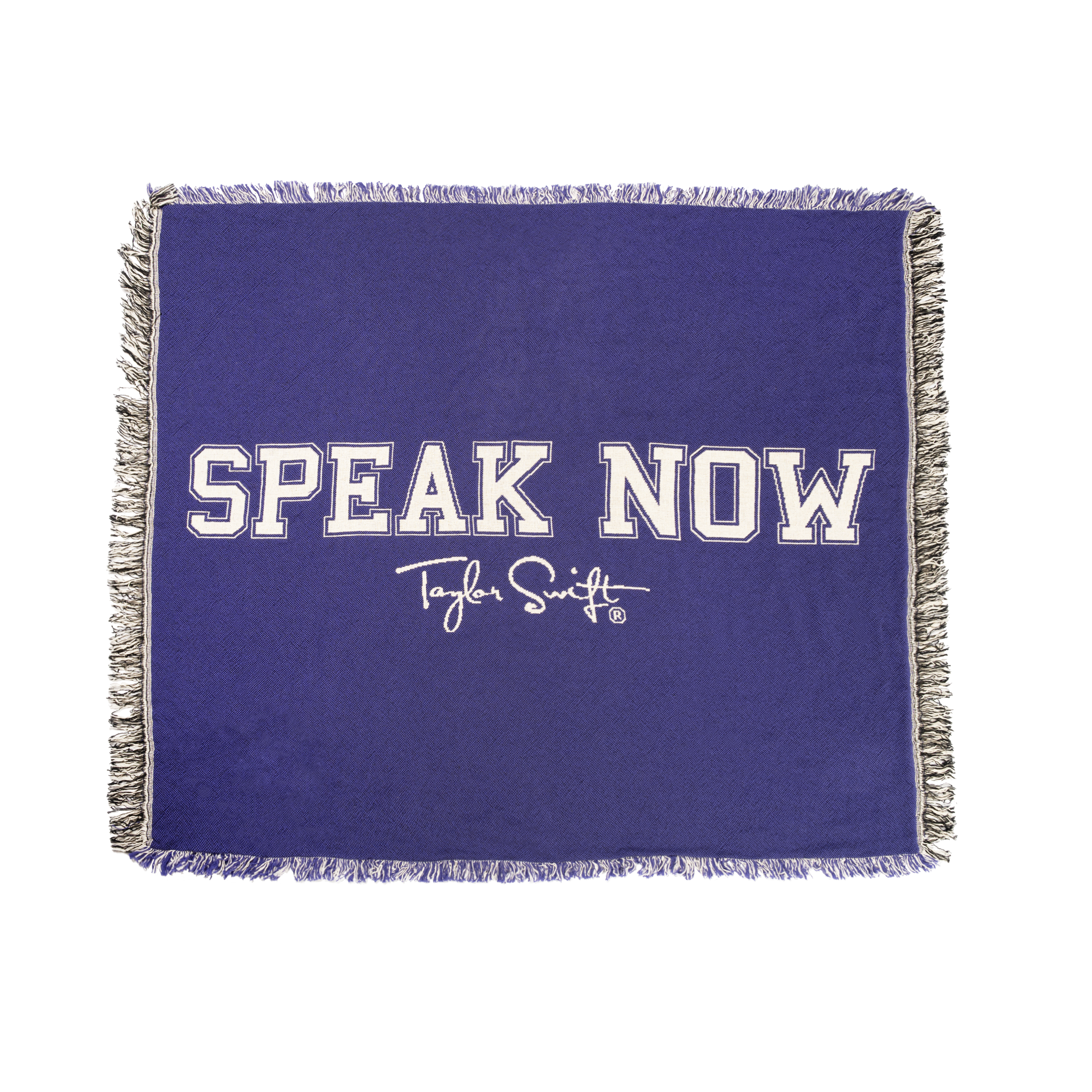 Purple woven blanket with "Speak Now" and "Taylor Swift" featured on front of blanket.