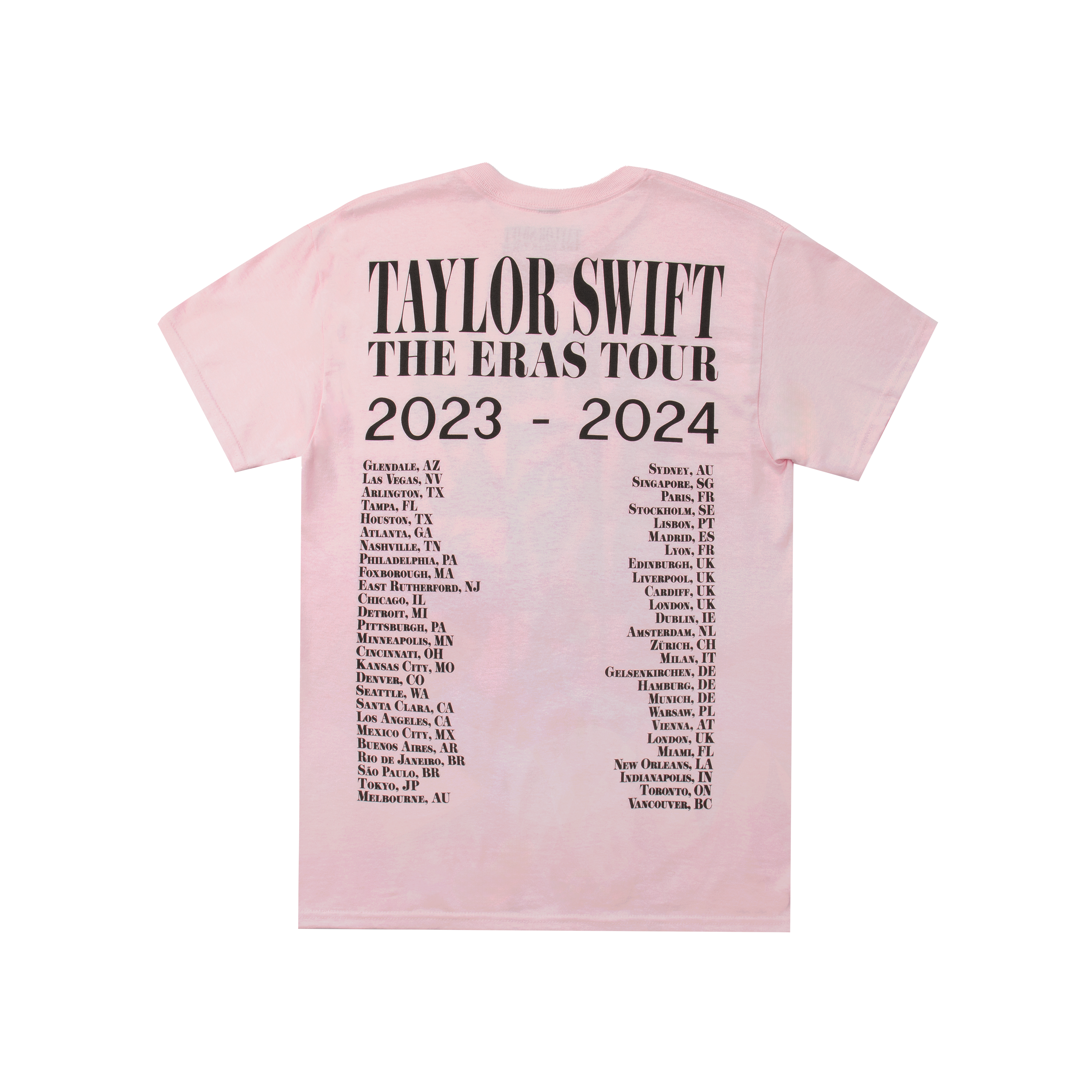 "Taylor Swift The Eras Tour" printed on front and "Taylor Swift The Eras Tour 2023-2024" and tour locations printed on back.