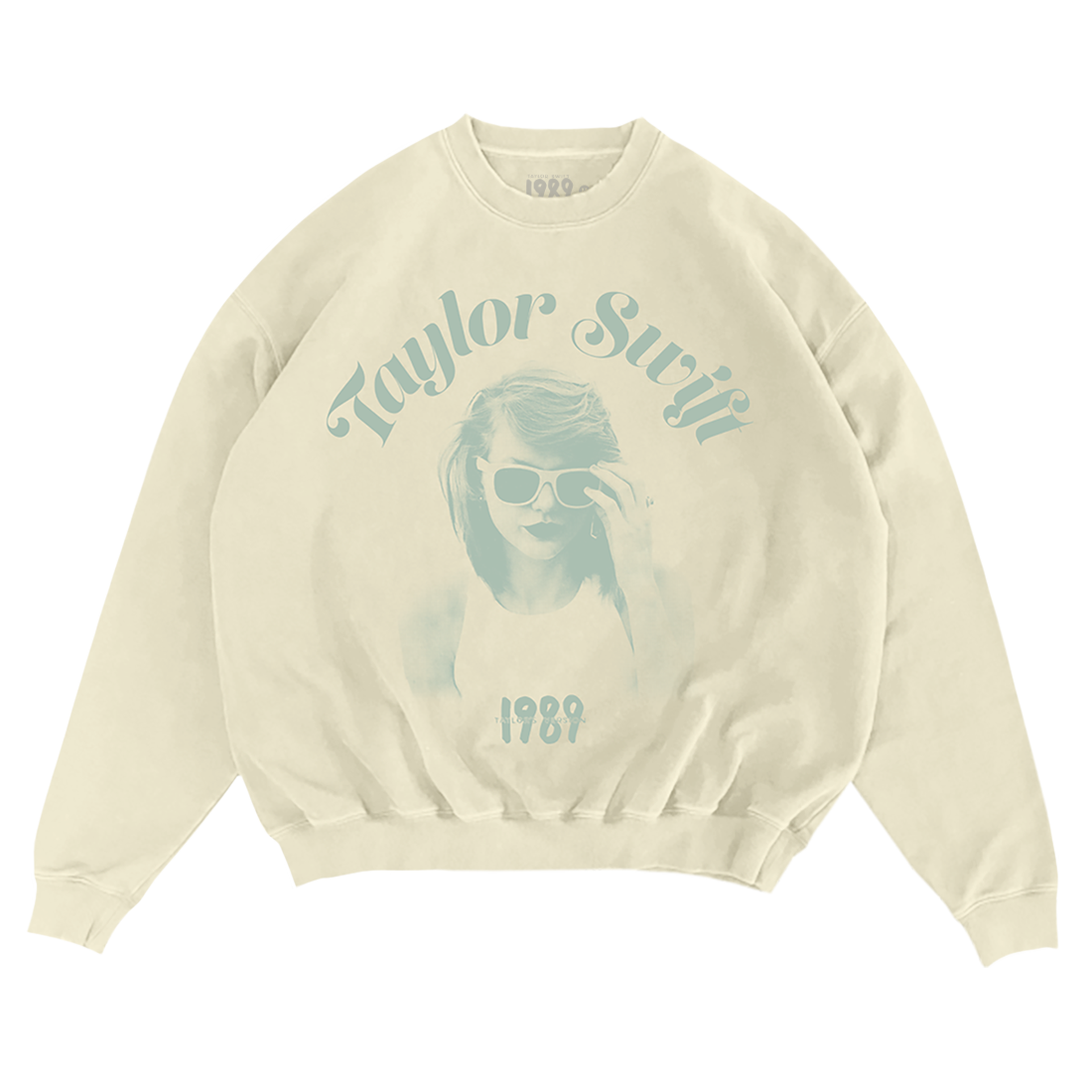 Light yellow crewneck featuring from the vault photo of Taylor Swift, "Taylor Swift", and "1989 Taylor's Version" printed on front.